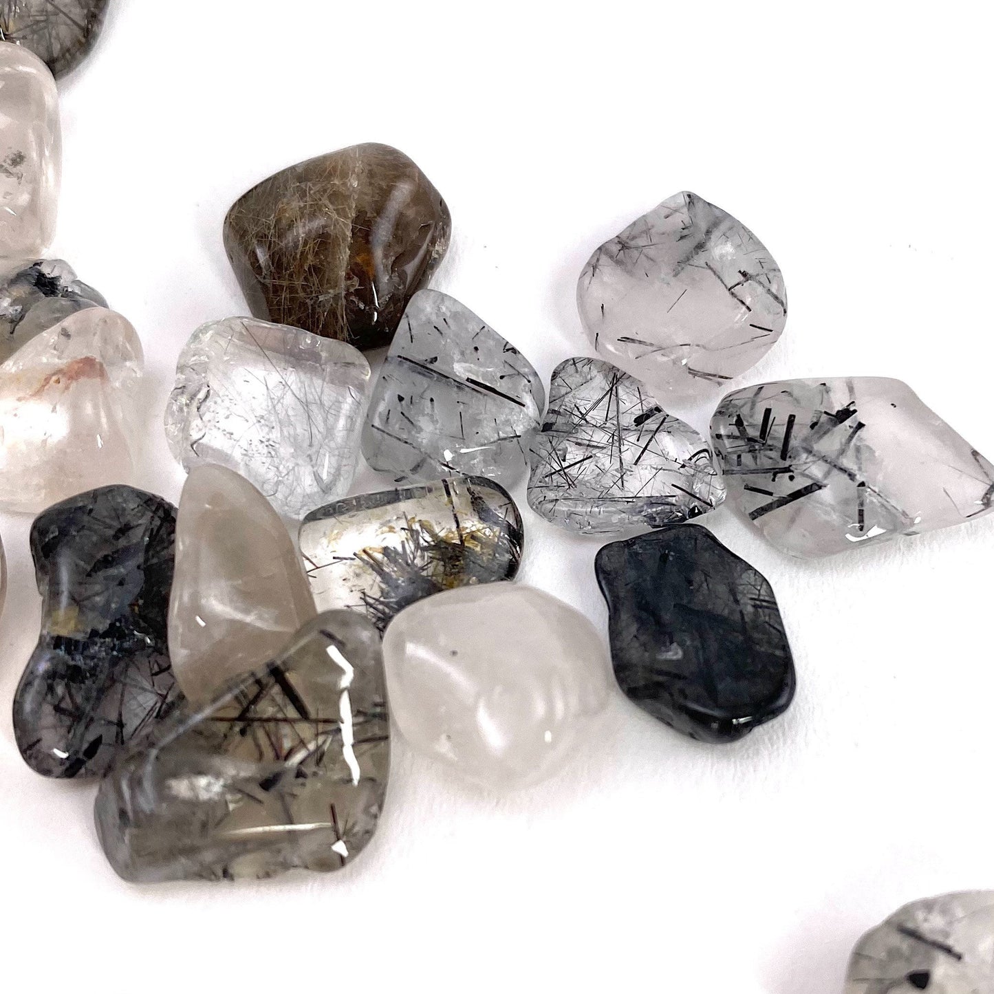 You will receive 20g of tumbled black rutilated quartz.