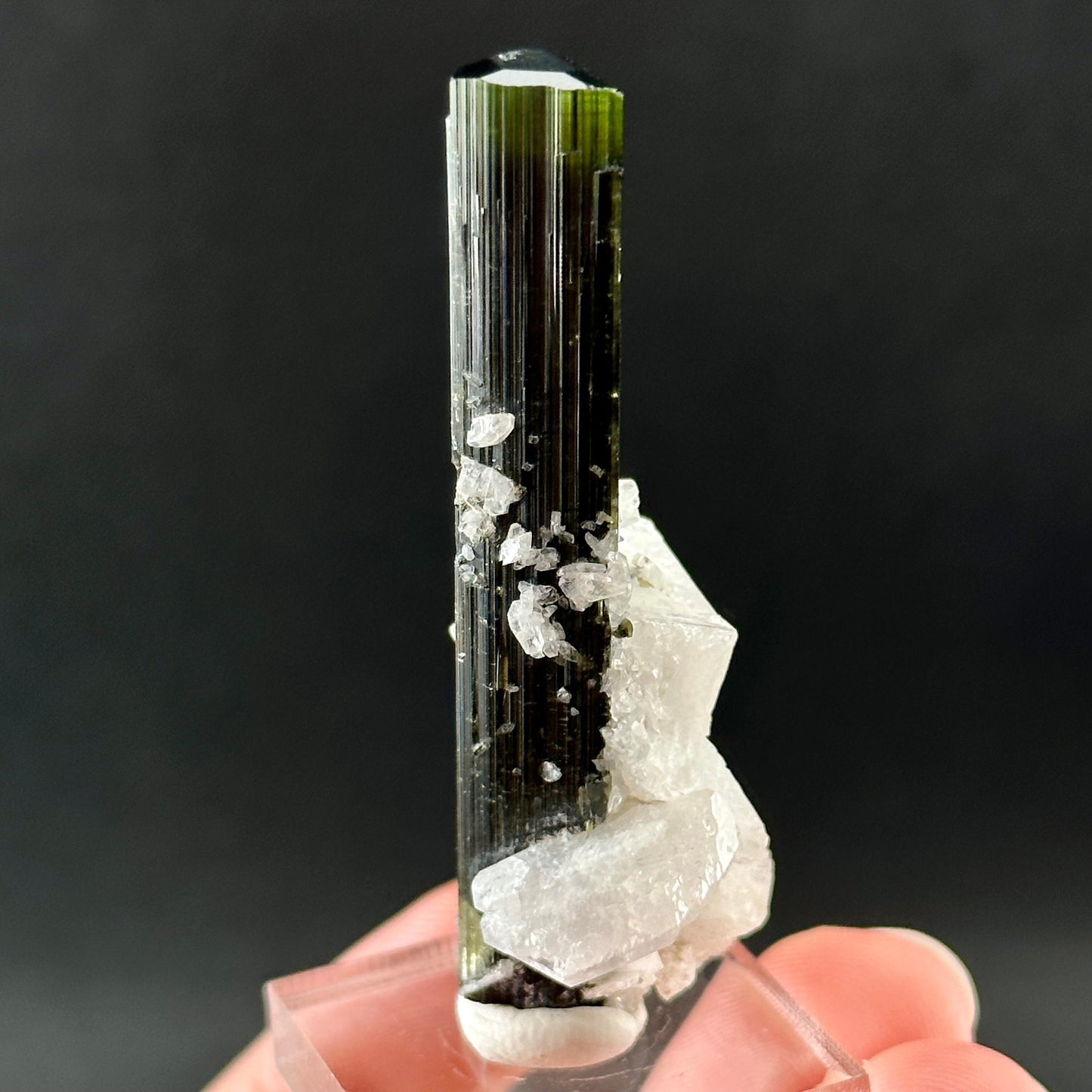 Green Cap Tourmaline with Albite (Pakistan) | raw tourmaline, green tourmaline, tourmaline crystal, rare minerals, rare crystals
