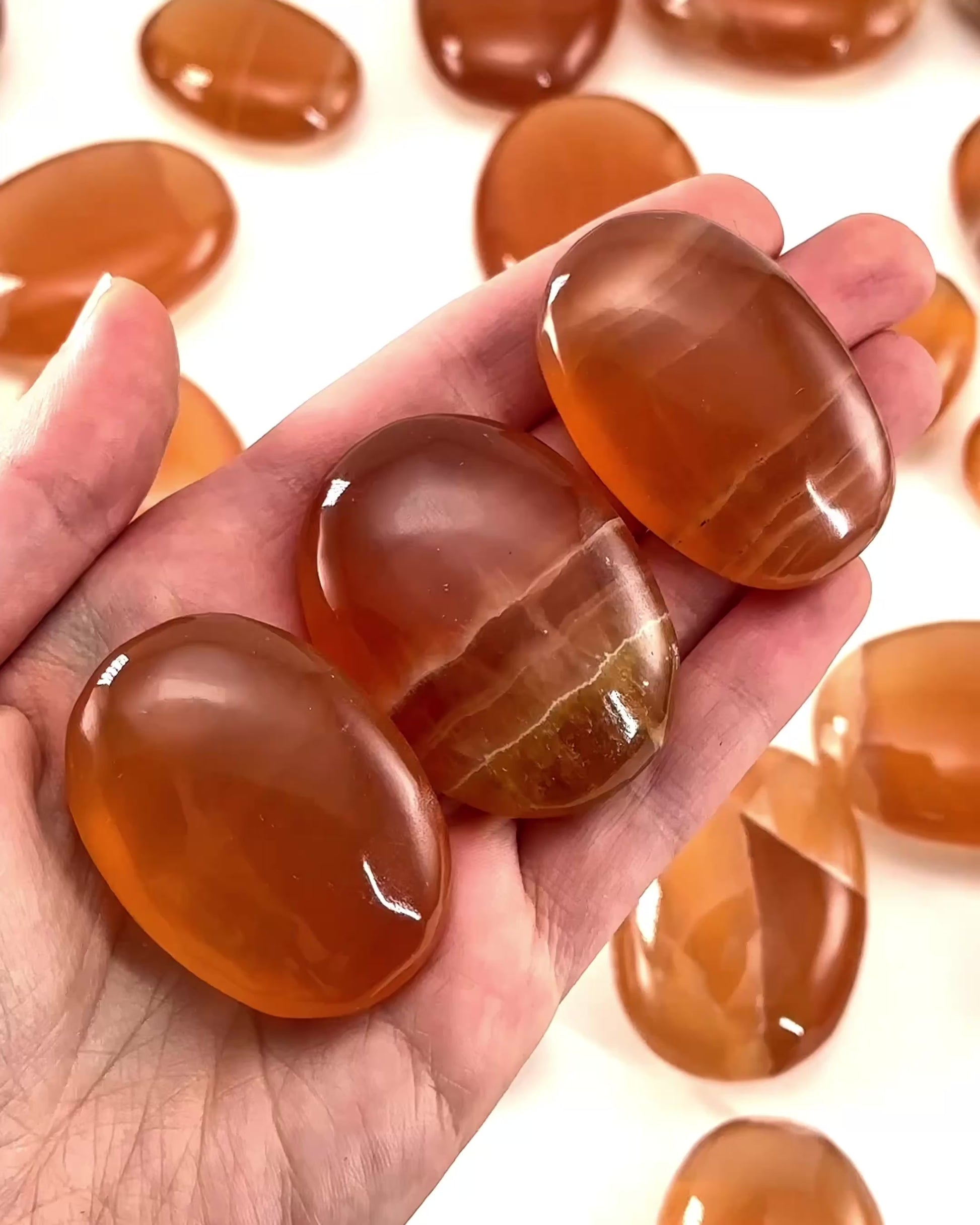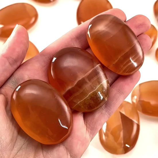 Honey Calcite Palm Stone | Polished Orange Crystal Worry Stone (Sacral Chakra)