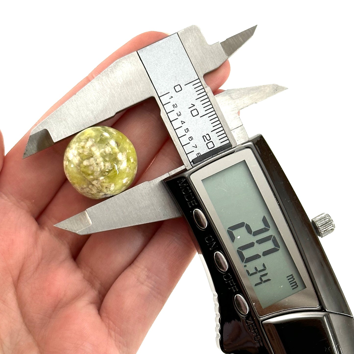Perfect little serpentine sphere. Awesome splotchy color. Packed well and came with a couple free small tumbles!