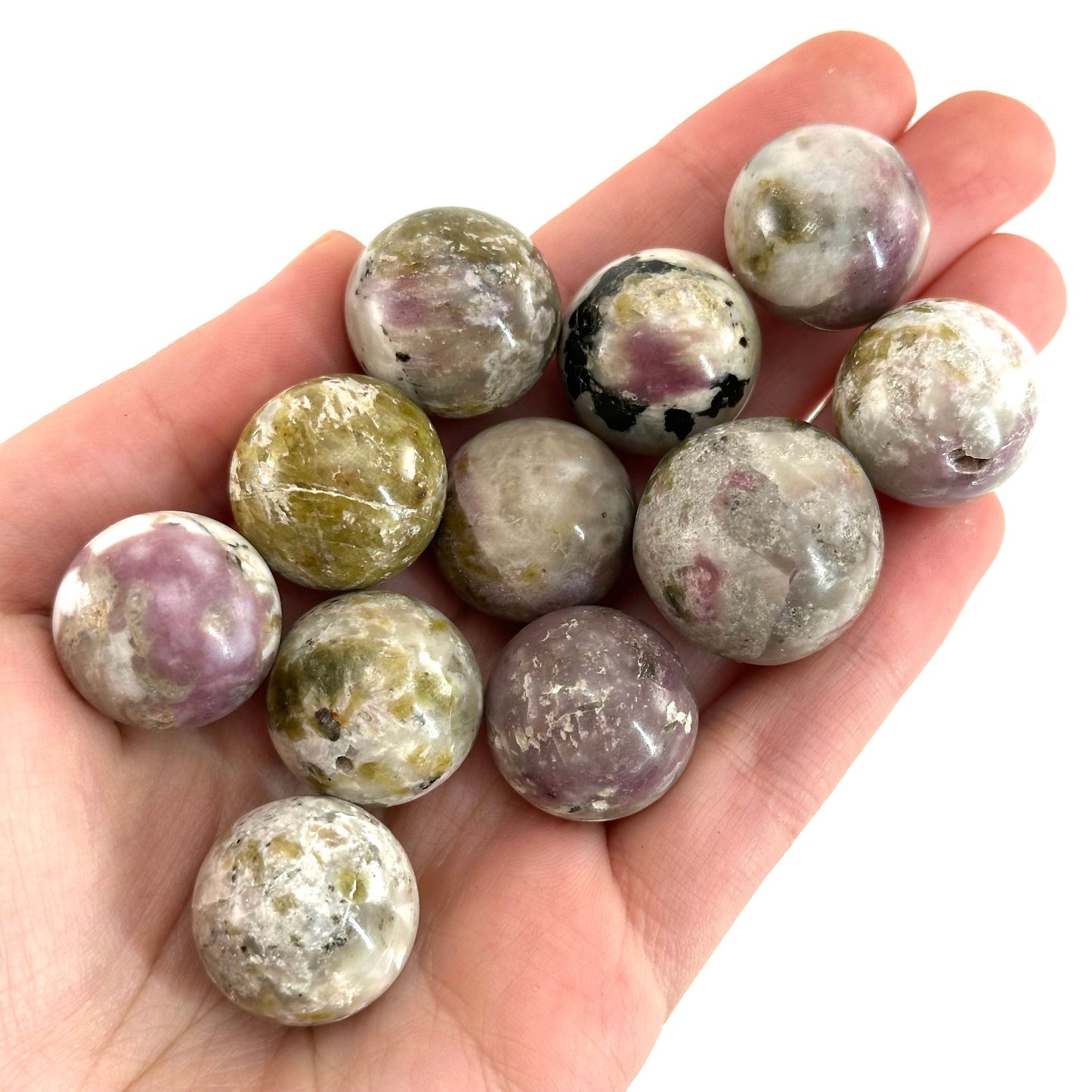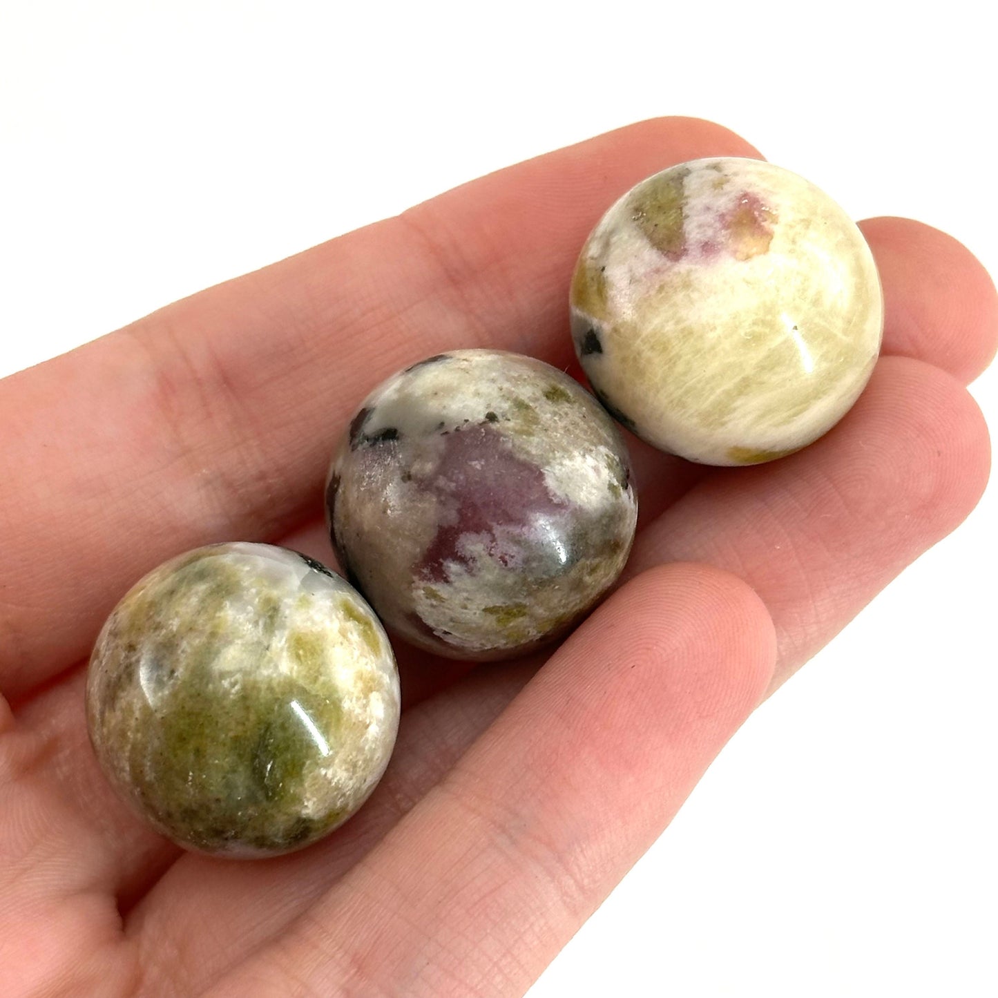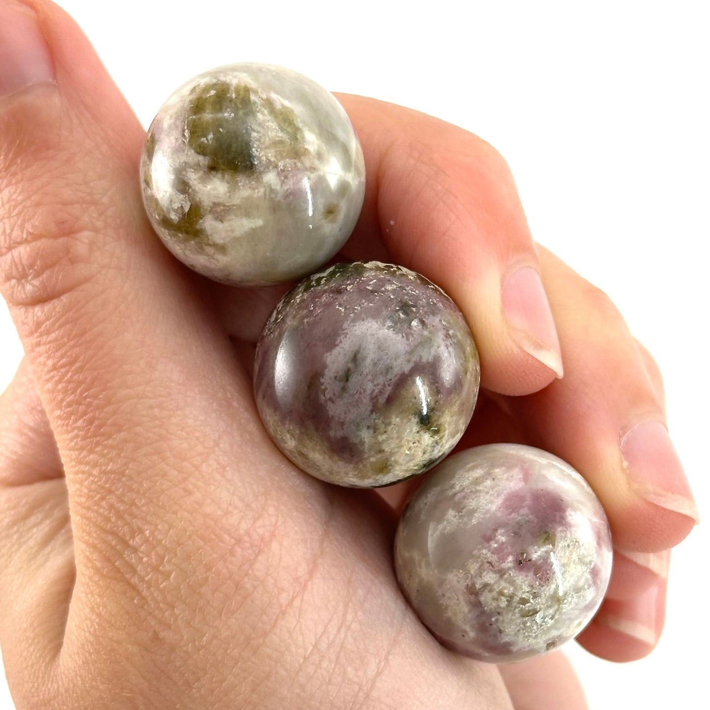 Perfect little mystic mica sphere. Gorgeous color. Packed well and came with a couple free small tumbles!