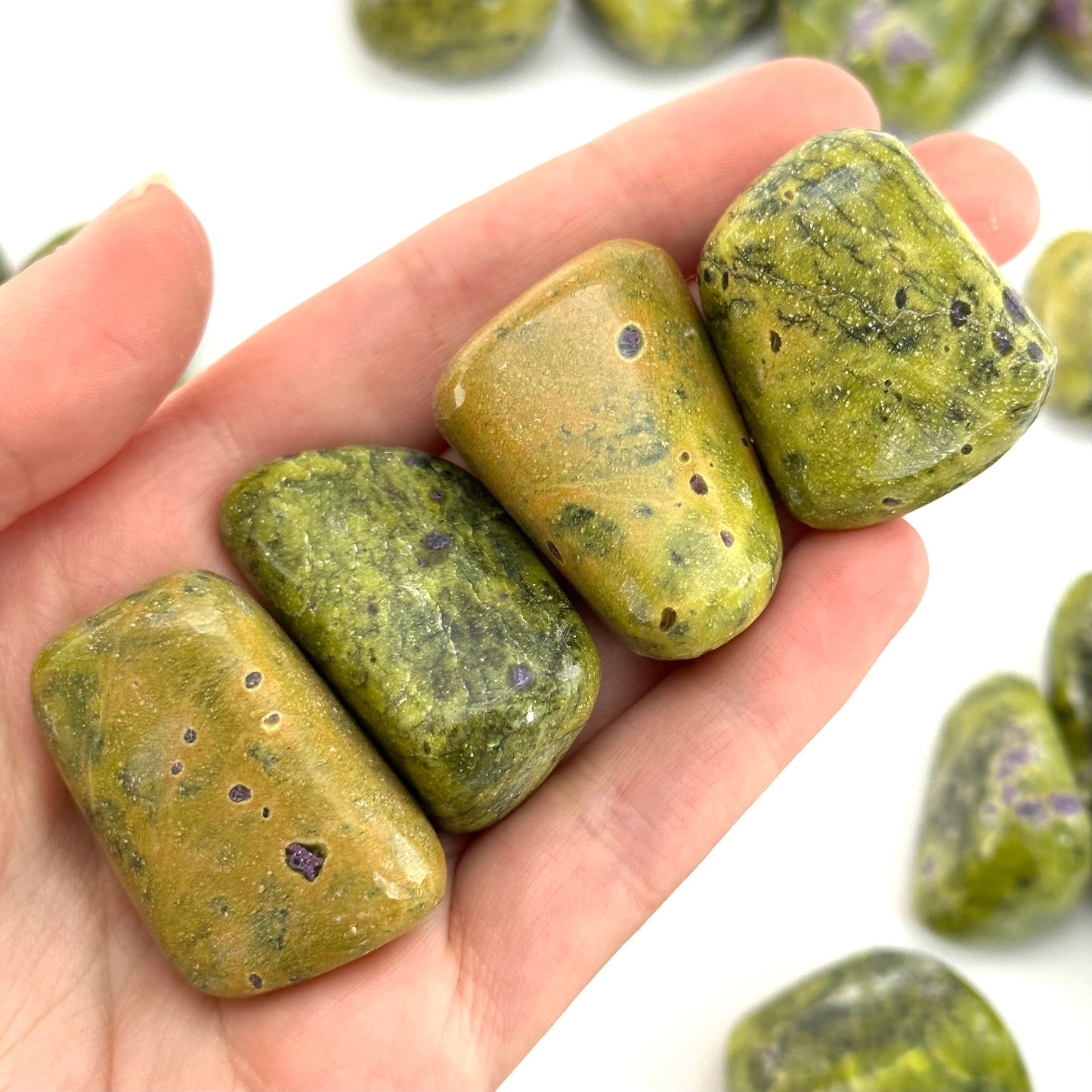 Please note that this is a natural product, sometimes stones and crystals have small imperfections and blemishes. Stichtite is a very soft mineral, so scratches or small chips from the polishing process may be present.