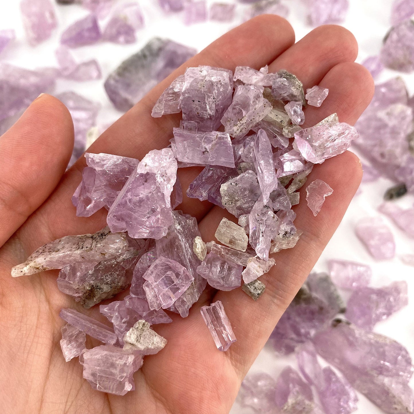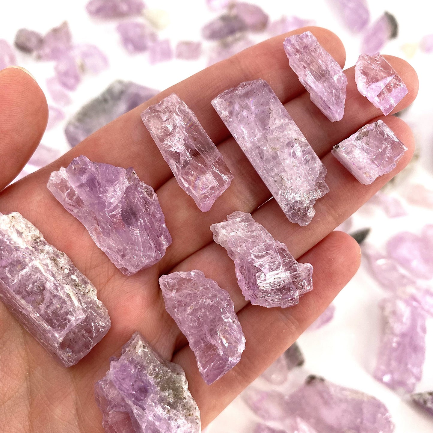 You will receive one pink kunzite crystal selected at random, please choose your desired weight. Shapes and sizes will vary as pricing is determined entirely by weight. As a reference, photo #2 shows an average sample of the full range of sizes. Please remember that the photos are only a reference, you are guaranteed to get a stone within the weight you choose, which means they will vary in terms of measurements.