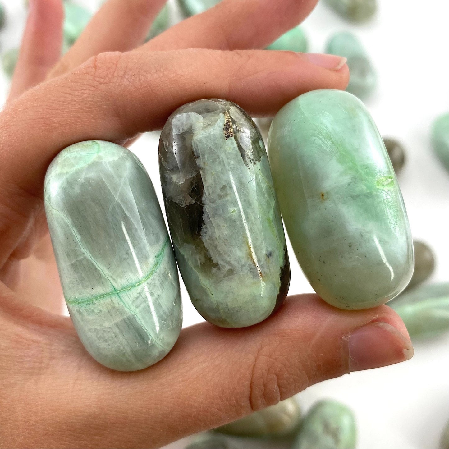ONE Polished Garnierite, tumbled garnierite, green garnierite, garnierite palm stone, garnierite