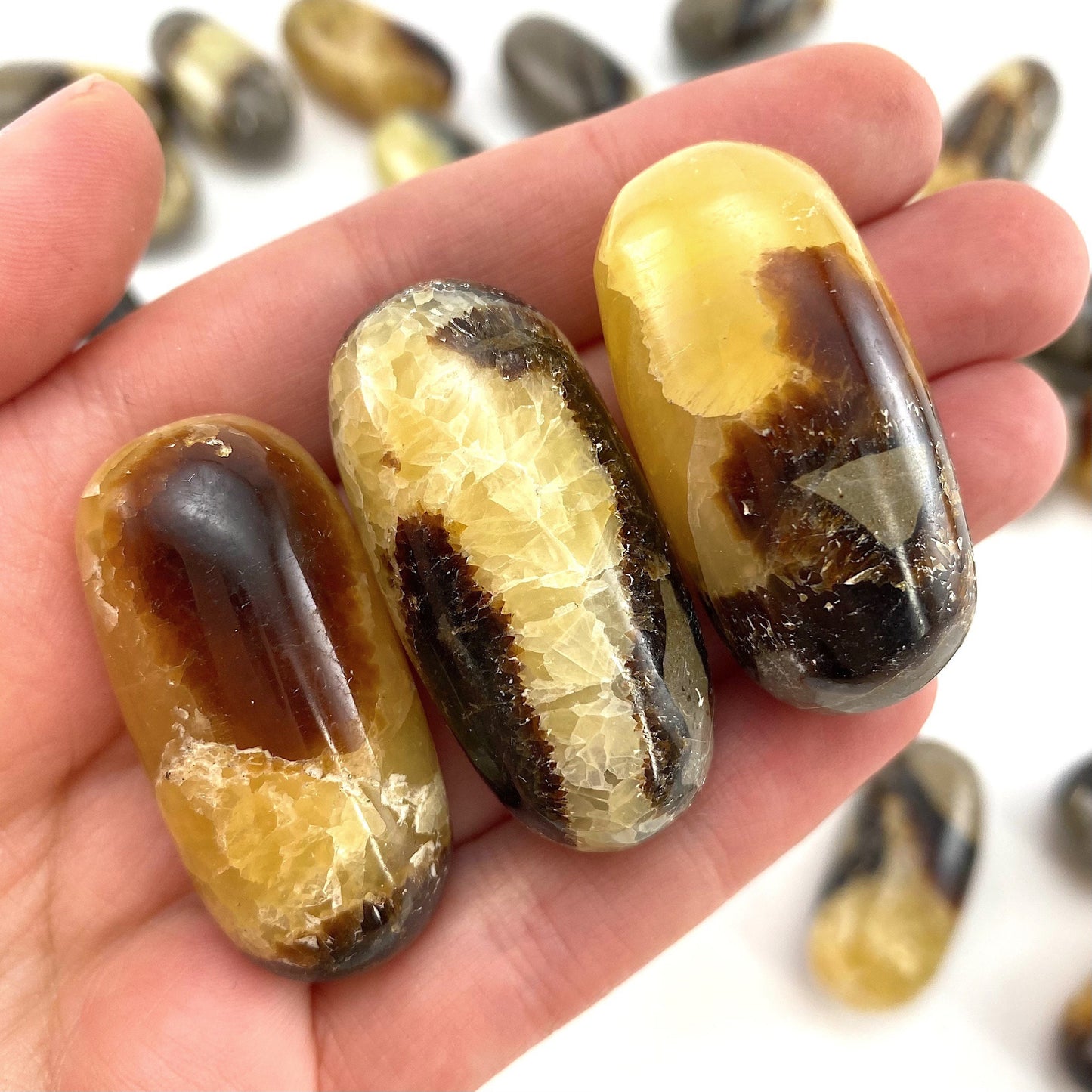 ONE Polished Septarian, septarian stone, tumbled septarian, yellow septarian tumble, septarian palm stone, dragon stone