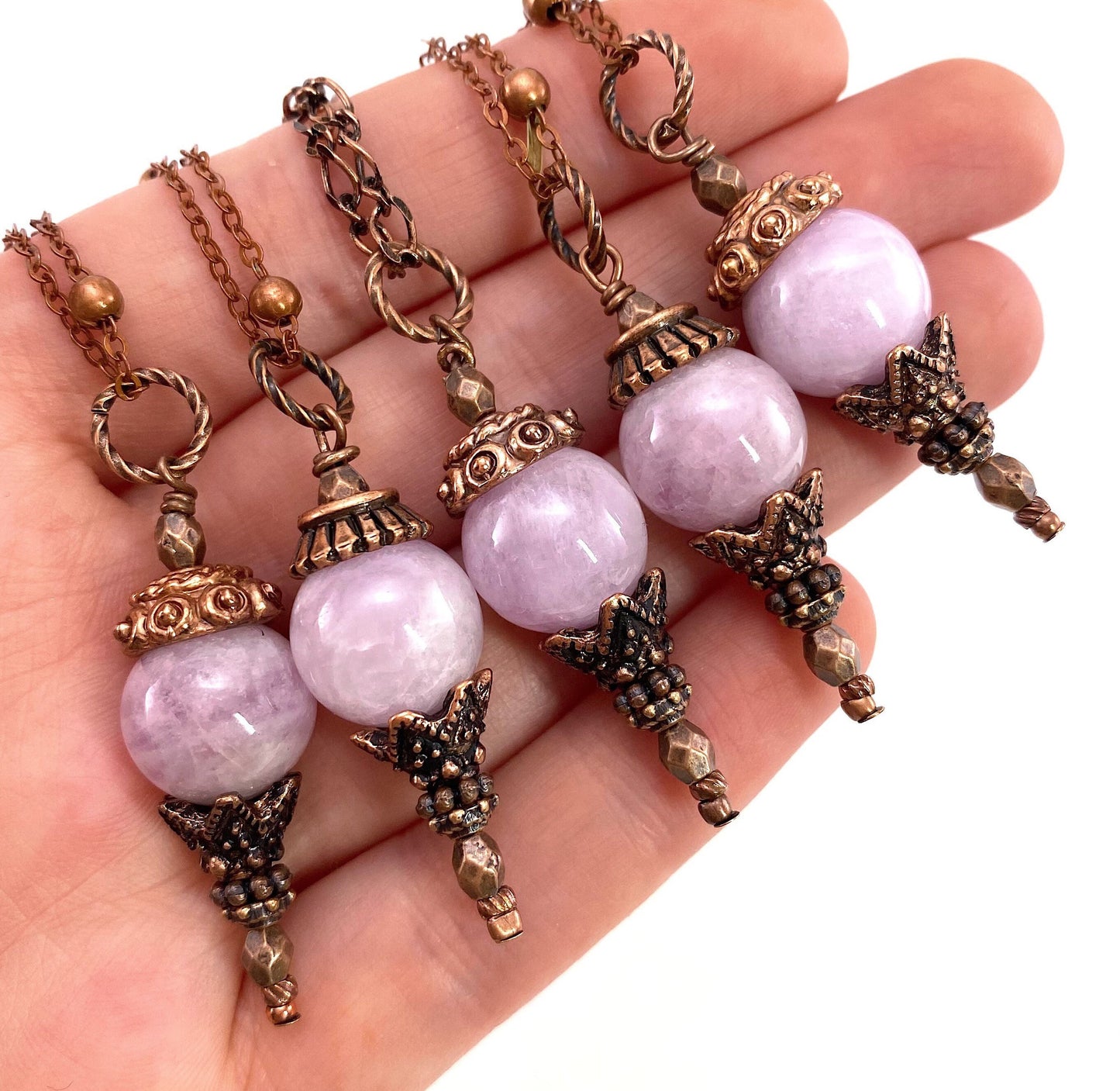 This elegant layering necklace features a 12mm pink kunzite bead. Necklace will be selected at random, so the stone colors may vary slightly. The pendant measures approximately 1 1/2 inches in length and 3/8 inch in width and hangs down 15 inches . (30 inches total chain length).