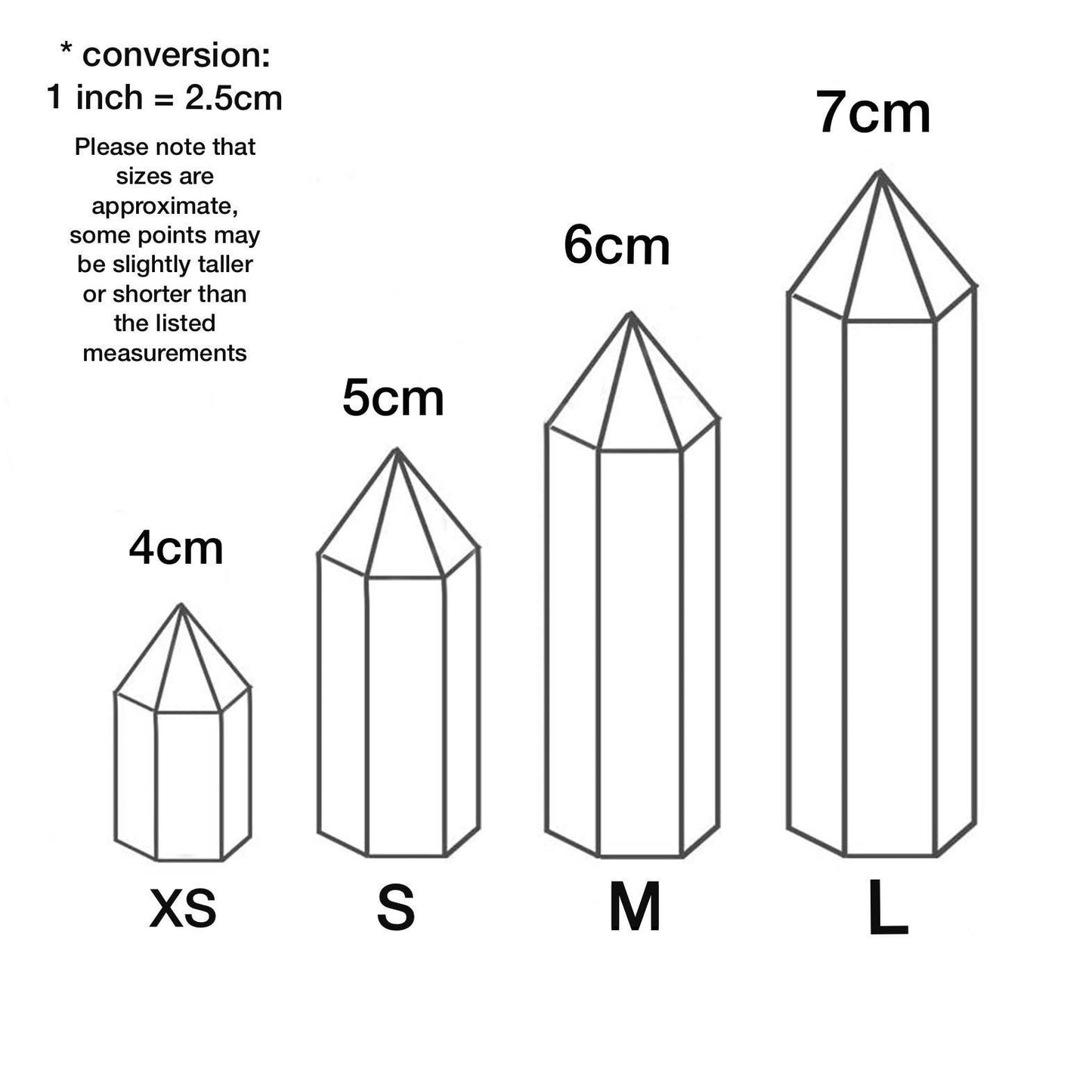 You will receive ONE point in your chosen size, please use photo #2 as a reference to choose your size. Measurements are approximate, some points may be shorter or taller than the estimates below. Colors and patterns vary.