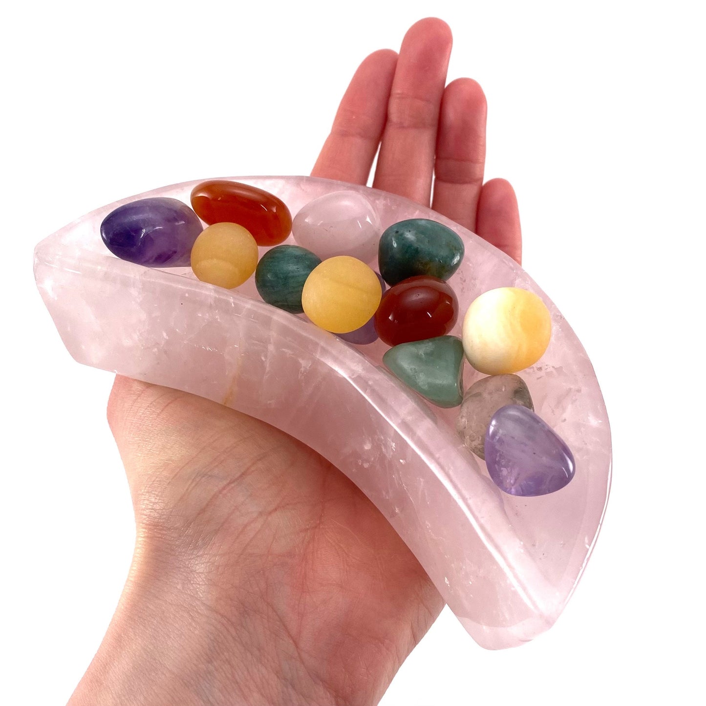 Rose quartz moon bowl, natural rose quartz, polished rose quartz bowl, rose quartz bowl, crystal bowl, moon shaped bowl