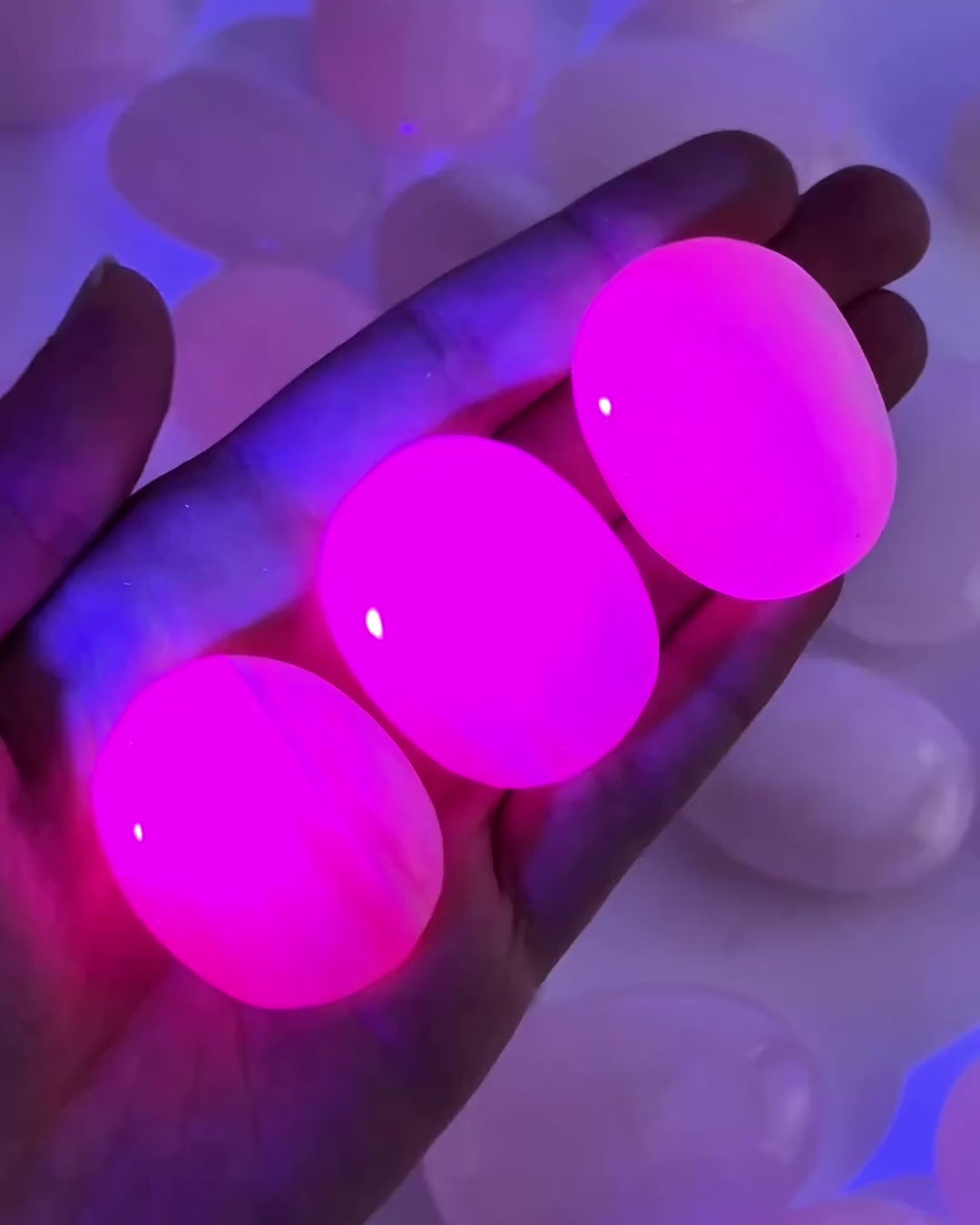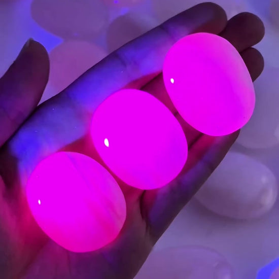 Mangano Calcite Palm Stone | UV-reactive Pink Crystal Worry Stone (Heart Chakra)