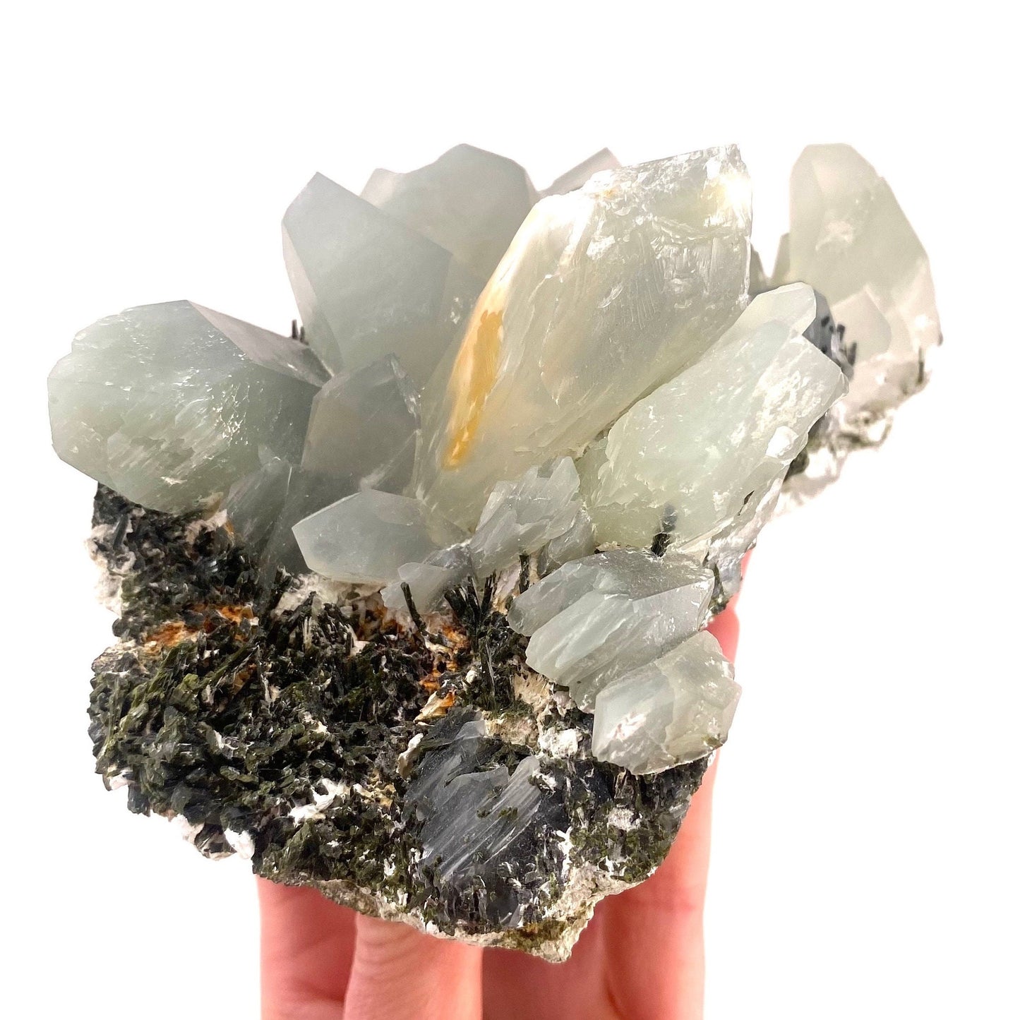 XXL Yellow bone quartz cluster with epidote inclusions (Pakistan) | halloysite quartz, epidote quartz, green epidote, mango quartz